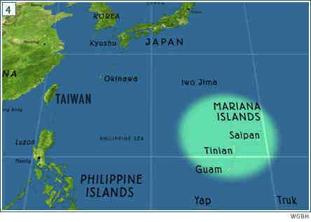 You remember from our discussion earlier how the Japanese attacked us at Pearl Harbor on December 7th, 1941. Then you remember how we defeated the Japanese at the Battle of Midway June 4th-7th, 1942. That was all OK, but to defeat Japan once and for all we had to dig them out of every island and every other country they had captured, and make our way to their Home Islands. They fought our attacks hard, and we had to come up with a plan to defeat them.